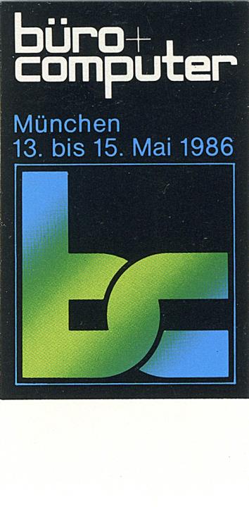 Werbeaufkleber für Messe büro+computer, München 13. - 15.05.1986