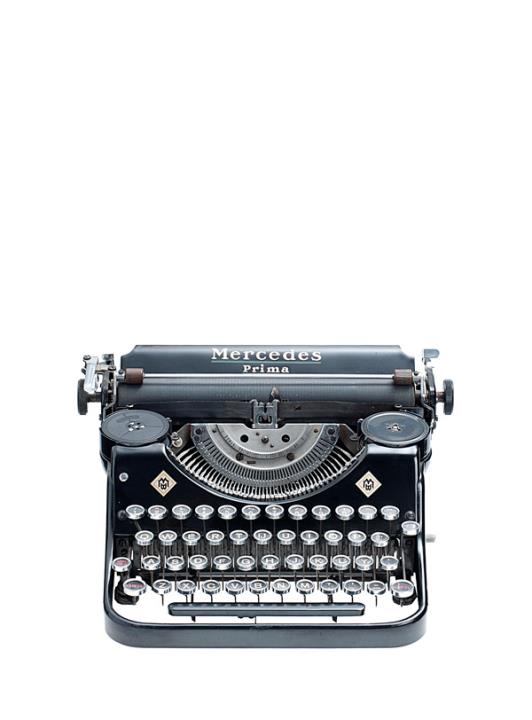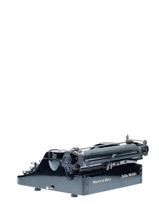 Schreibmaschine Mercedes Modell Prima (mod. 34) Eigenschaften: Typenhebel, Vorderanschlag, einfache Umschaltung, Farbband Tastatur: universal, vierreihig, 44 Schreibtasten, Seriennummer 156890/1