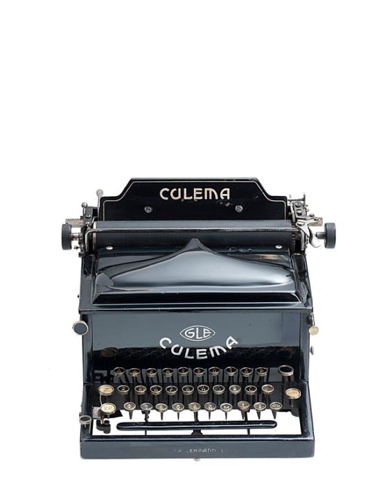 Schreibmaschine Culema Modell 3 Eigenschaften: Typenhebel, Vorderanschlag, doppelte Umschaltung, Farbband Tastatur: universal, dreireihig, 30 Schreibtasten Konstrukteur: Curt Lehmann, Seriennummer 449
