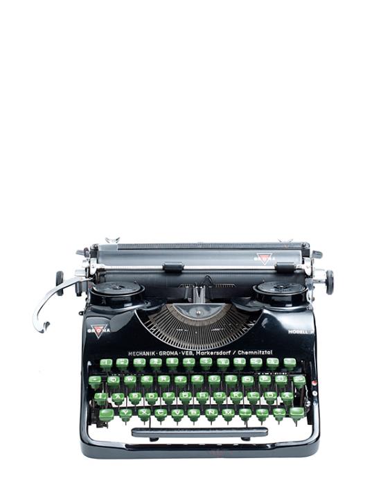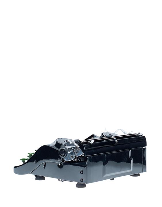 Schreibmaschine Groma Modell N Eigenschaften: Typenhebel, Vorderanschlag, einfache Umschaltung, Farbband Tastatur: universal, vierreihig, 44 Schreibtasten, Seriennummer 278300
