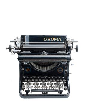 Schreibmaschine Groma Modell S Eigenschaften: Typenhebel, Vorderanschlag, einfache Umschaltung, Farbband, Tabulator Tastatur: universal, vierreihig, 45 Schreibtasten