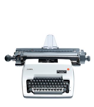Schreibmaschine Olympia Modell SG3 Musicwriter Eigenschaften: Typenhebel, Vorderanschlag, einfache Umschaltung, Karbonband, Tabulator, Breitwagen Tastatur: Musiknotationszeichen, vierreihig, 46 Schreibtasten Konstrukteur: Cecil S. Effinger