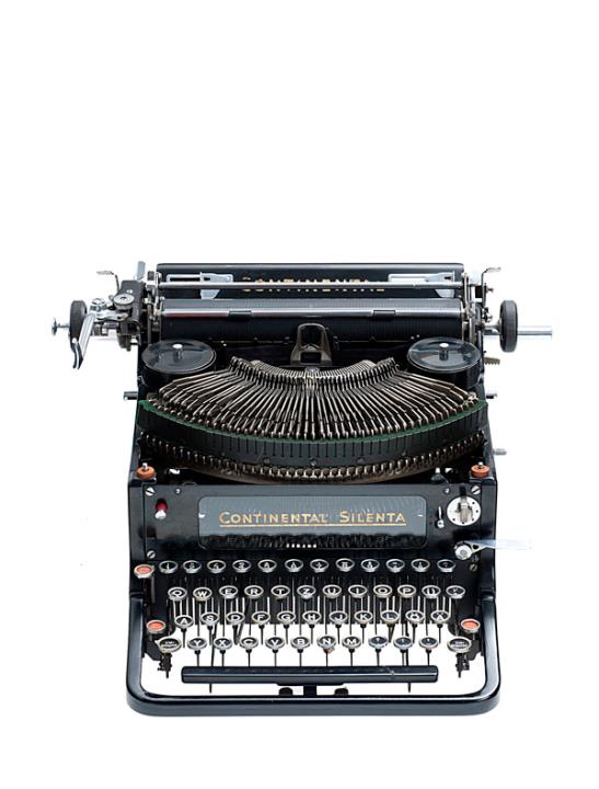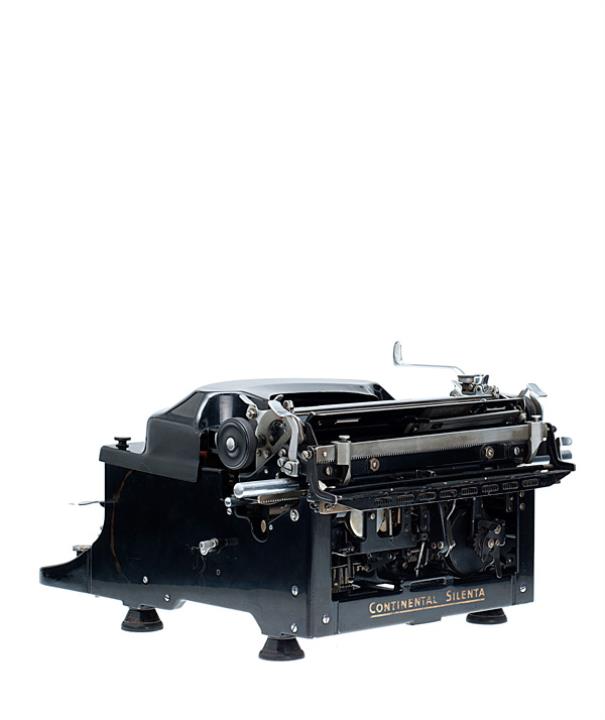 Schreibmaschine Continental Modell Silenta Eigenschaften: Typenhebel, Vorderanschlag, einfache Umschaltung, Farbband Tastatur: universal, vierreihig, 45 Schreibtasten Konstrukteur: Alfred Richard Georg Vogt, Seriennummer 714286