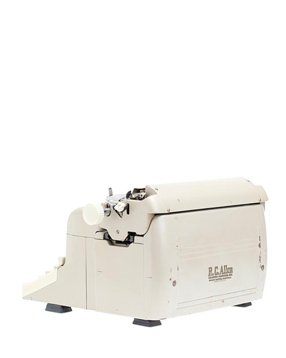 Schreibmaschine R.C. Allen Modell VisOmatic A Eigenschaften: Typenhebel, Vorderanschlag, einfache Umschaltung, Farbband, Tabulator Tastatur: universal, vierreihig, 44 Schreibtasten, Seriennummer A-2252325-11