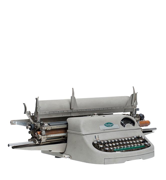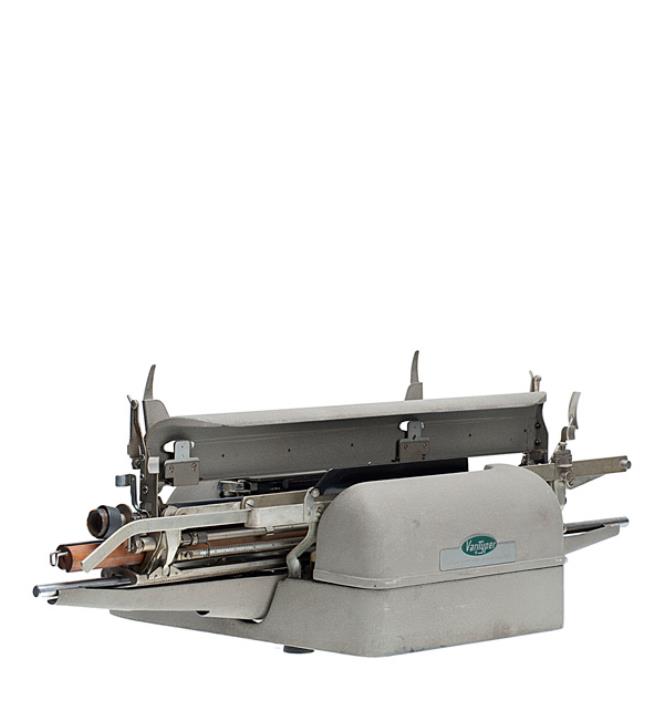 Elektrische Schreibmaschine VariTyper Modell A-20 Eigenschaften: Typensegment, Druckhammeranschlag, doppelte Umschaltung, Karbonband, Breitwagen, Tabulator, Elektromotor, ausziehbares Fach mit 15 verschiedenen Schrift-Typenschiffchen Tastatur: universal, dreireihig, 30 Schreibtasten Konstruktion: Ralph Cramer Coxhead, Frank H. Trego, Charles Winfred Norton Besonderheit: Schriftsetzmaschine in Nachfolge der Hammond Varityper, Seriennummer 510891 20