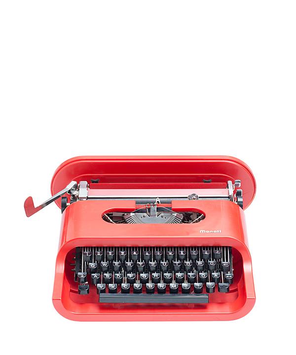Schreibmaschine Monpti (ohne Schubkoffer) Eigenschaften: Typenhebel, Vorderanschlag, einfache Umschaltung, Farbband Tastatur: universal, vierreihig, 44 Schreibtasten Design: Stefan Lengyel Besonderheit: entstand vor der Schreibmaschine Olivetti Valentine, Seriennummer 018007