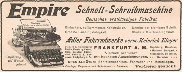 Werbeanzeige für Schreibmaschine Adler Empire monochrom