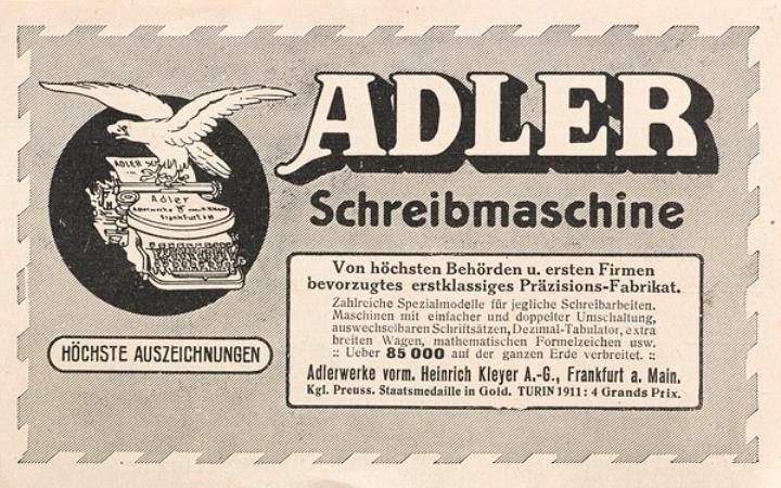 Werbeanzeige für Schreibmaschine Adler monochrom