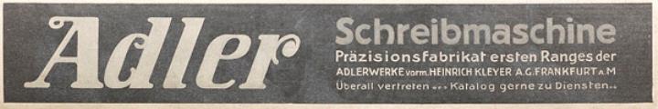 Werbeanzeige für Schreibmaschine Adler monochrom