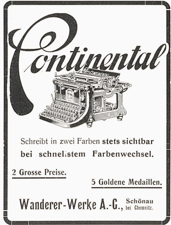 Werbeanzeige für Schreibmaschine Continental monochrom