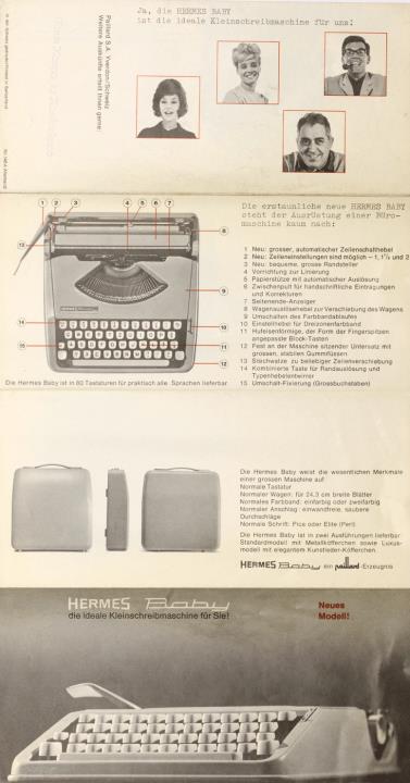 Faltprospekt für Schreibmaschine Hermes Baby Nr. 146 A Allemand