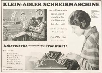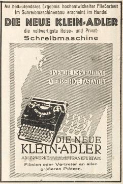Klein-Adler Schreibmschine die vollkommenste [...] für das Heim und für die Reise