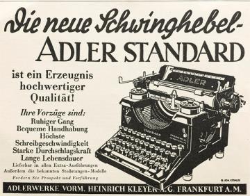 Werbeanzeige für Schreibmaschine Adler Standard monochrom