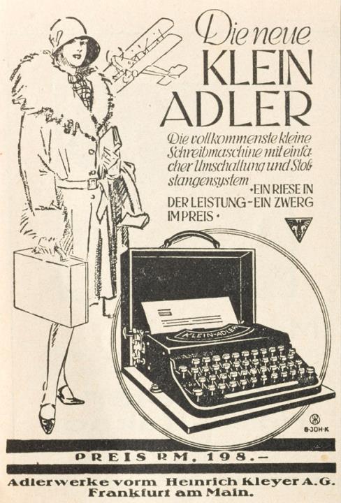 Werbeanzeige für Schreibmaschine Klein-Adler monochrom, zwei Exemplare