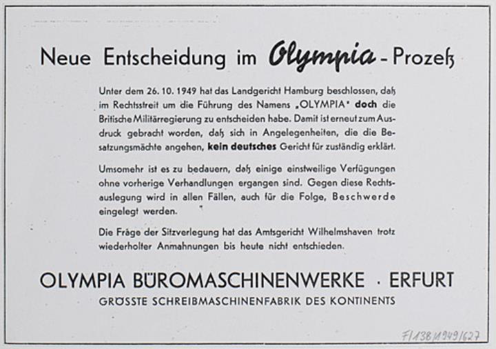 Informationsanzeige des Schreibmaschinenherstellers Olympia Fotokopie