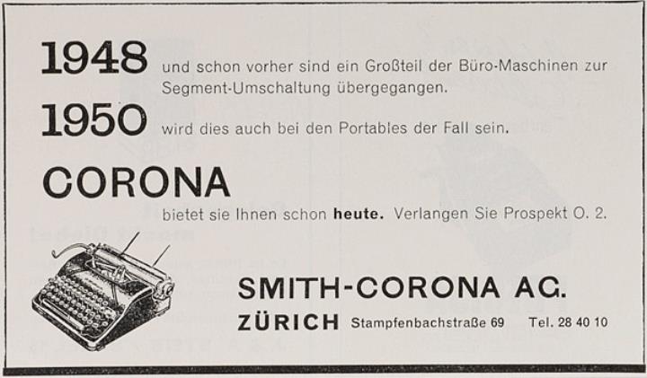 Werbeanzeige für Schreibmaschine Corona monochrom