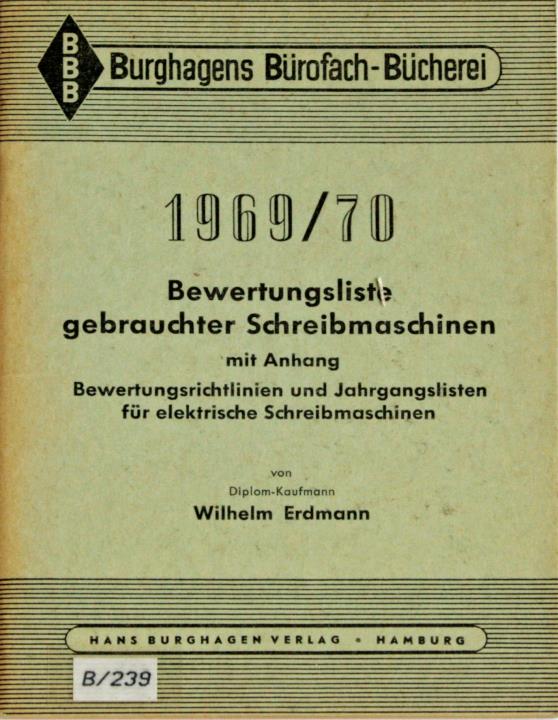 mit Anhang Bewertungsrichtlinien und Jahrgangslisten für elektrische Schreibmaschinen 10. Auflage
