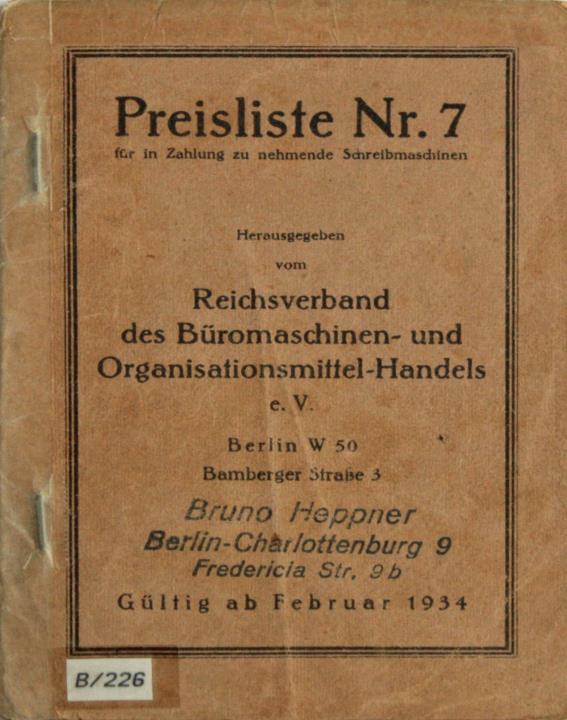 Preisliste Nr. 7 für in Zahlung zu nehmende Schreibmaschinen