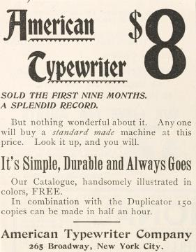 Next to literature on the history of technology, of the typewriter and the office, the Archive holds patent letters, textbooks and instruction manuals as well as historical postcards, letters, photographs and various kinds of advertising (leaflets and brochures, advertising stamps, newspaper ads, posters and signs, promotional gifts).