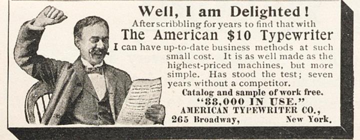 Next to literature on the history of technology, of the typewriter and the office, the Archive holds patent letters, textbooks and instruction manuals as well as historical postcards, letters, photographs and various kinds of advertising (leaflets and brochures, advertising stamps, newspaper ads, posters and signs, promotional gifts).