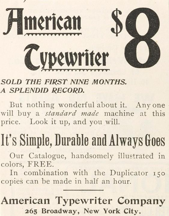 Werbeanzeige für Schreibmaschine American monochrom