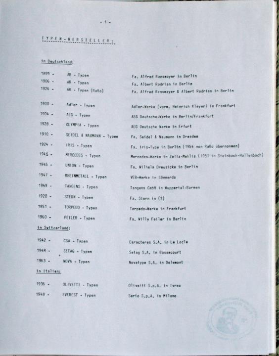 Schreibmaschine, Schriftart, Schreibmaschinenschrift, Typenhebel, Typen, Unternehmen