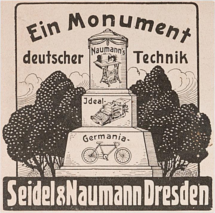 Werbeanzeige des Schreibmaschinenherstellers Seidel & Naumann monochrom, Grafik: HS