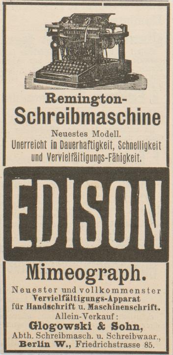 Werbeanzeige für Schreibmaschine Remington und Edison Mimeograph monochrom, zwei Exemplare