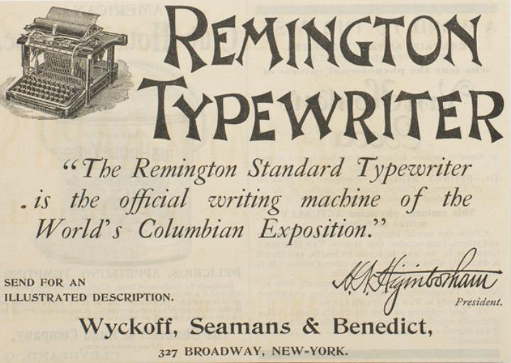 Werbeanzeige für Schreibmaschine Remington monochrom