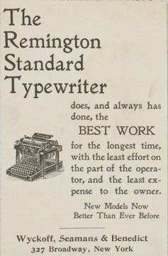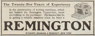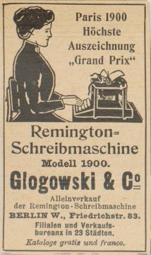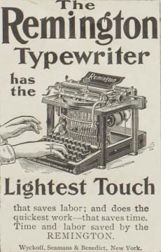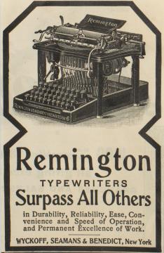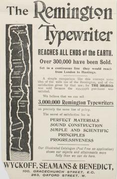 Werbeanzeige für Schreibmaschine Remington; auf Karton geklebt monochrom