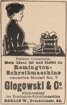 Werbeanzeige für Schreibmaschine Remington monochrom