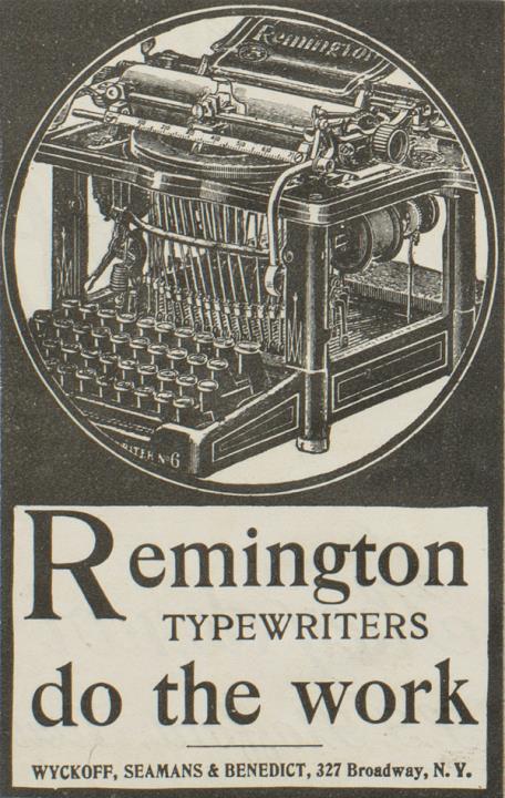 Werbeanzeige für Schreibmaschine Remington; auf Karton geklebt monochrom