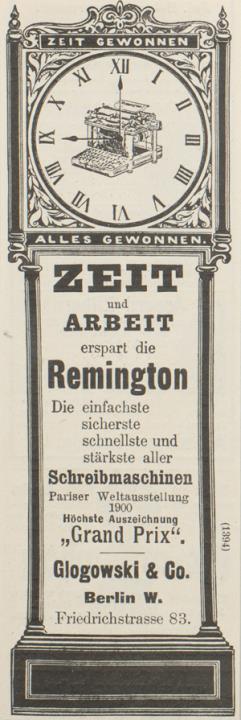 Werbeanzeige für Schreibmaschine Remington monochrom
