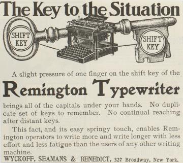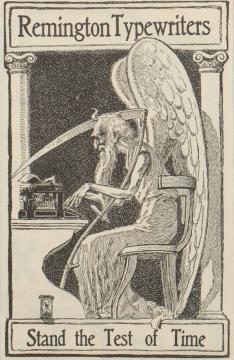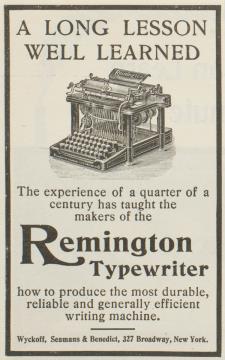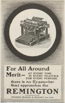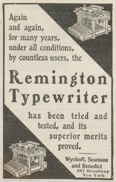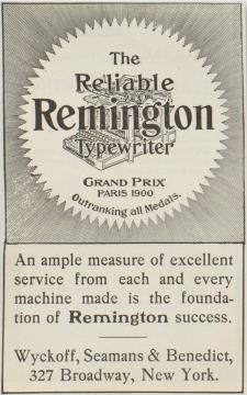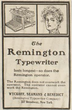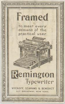 Werbeanzeige für Schreibmaschine Remington; auf Karton geklebt monochrom