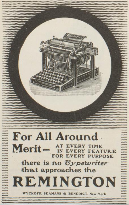 Werbeanzeige für Schreibmaschine Remington monochrom
