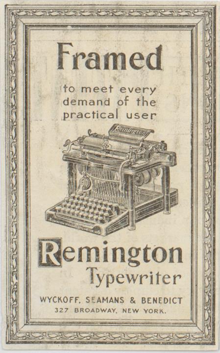 Werbeanzeige für Schreibmaschine Remington monochrom