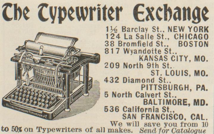 Werbeanzeige für Schreibmaschinenhandlung Typewriter Exchange monochrom