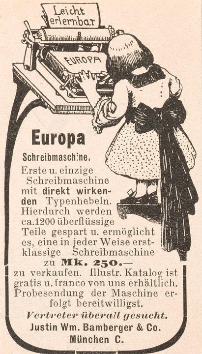 Werbeanzeige für Schreibmaschine Europa monochrom