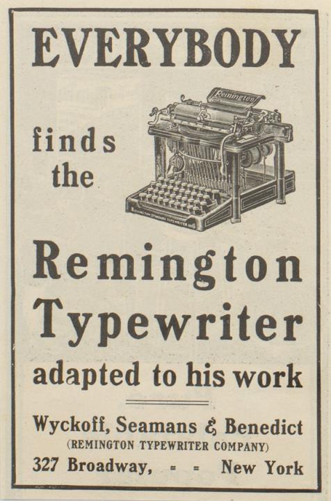Werbeanzeige für Schreibmaschine Remington monochrom