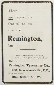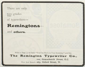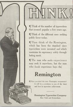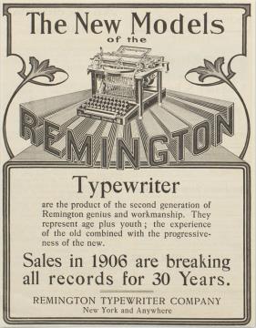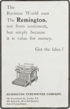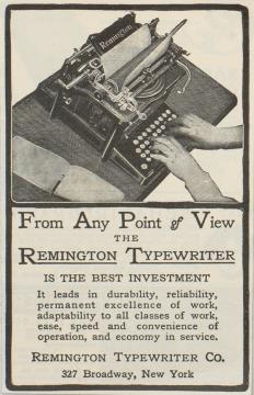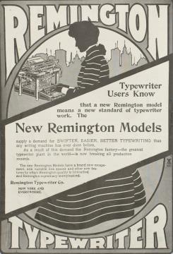 Werbeanzeige für Schreibmaschine Remington; auf Karton geklebt monochrom