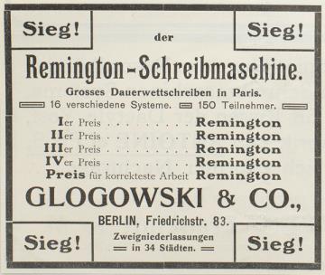 Werbeanzeige für Schreibmaschine Remington polychrom
