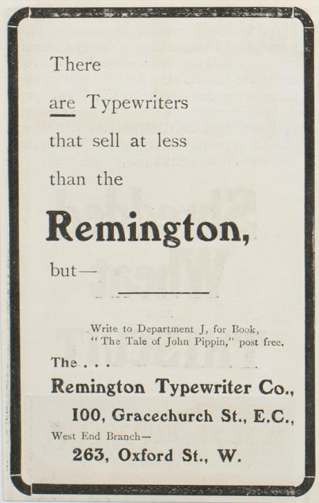 Werbeanzeige für Schreibmaschine Remington monochrom
