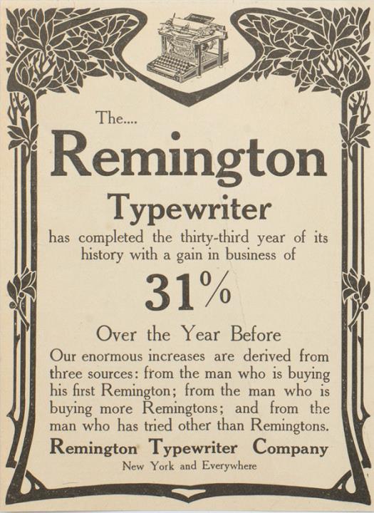 Werbeanzeige für Schreibmaschine Remington monochrom