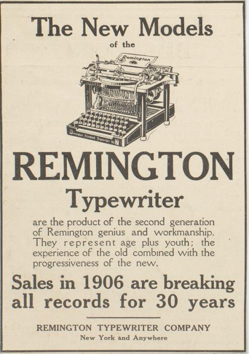 Werbeanzeige für Schreibmaschine Remington monochrom
