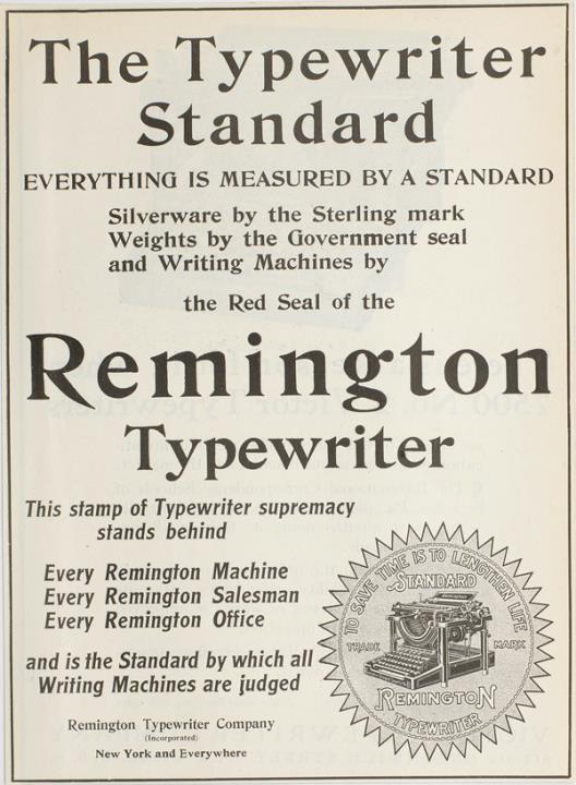 Werbeanzeige für Schreibmaschine Remington monochrom