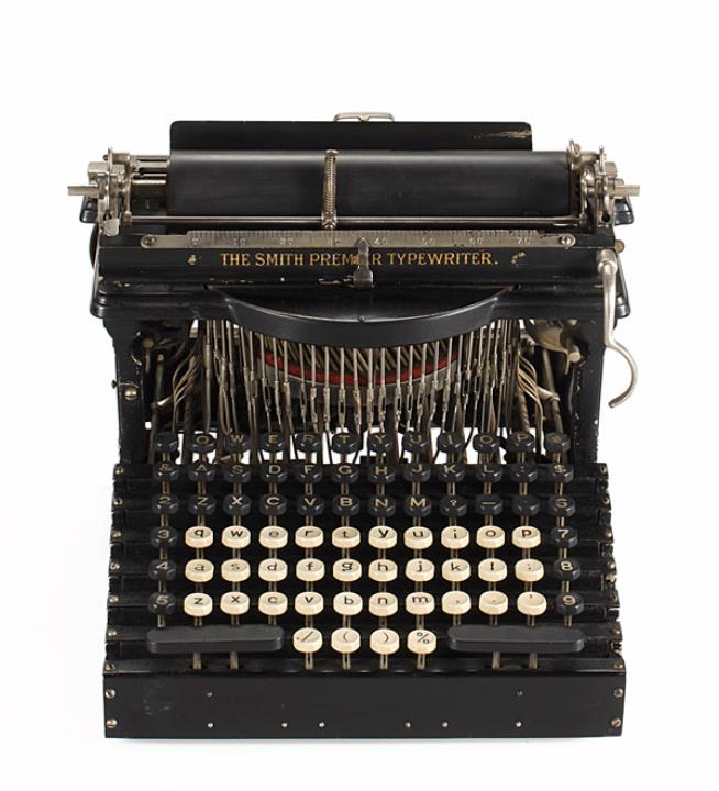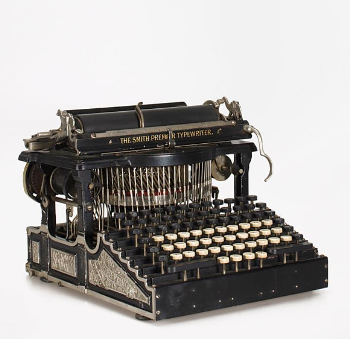 Schreibmaschine Smith Premier Modell 1 Eigenschaften: Typenhebel, Unteranschlag, Volltastatur, breites Farbband, Typenreinigungsbürste Tastatur: universal, siebenreihig, 76 Schreibtasten Konstrukteur: Alexander Timothy Brown Besonderheit: Hebelgelenke mit Kugellager, Wellen anstelle der Tastenhebel, Reliefguss-Verzierung, Seriennummer 35252