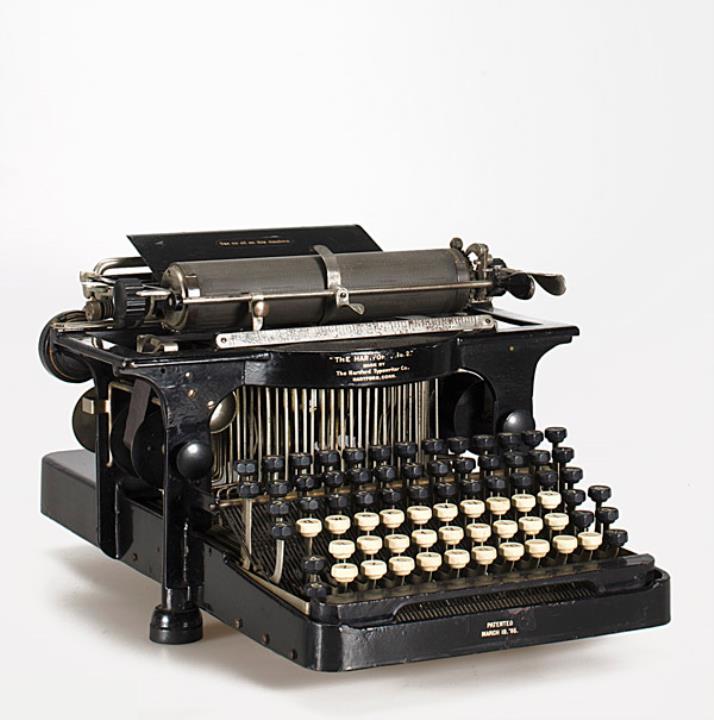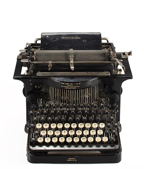 Schreibmaschine Hartford Modell 2 Eigenschaften: Typenhebel, Unteranschlag, Volltastatur, Farbband Tastatur: universal, sechsreihig, 75 Schreibtasten (eine leer) Konstrukteur: John M. Fairfield Besonderheit: drei Füsse für stabilen Stand der Maschine, Seriennummer 2648