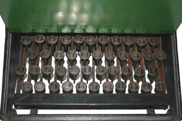 Schreibmaschine, Sholes Christopher Latham, Typenhebel, Typenkorb, Unteranschlag, Farbband