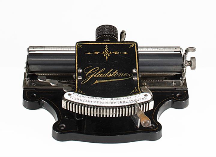Schreibmaschine Gladstone (Edelmann) Eigenschaften: Typenzylinder, Oberanschlag, doppelte Umschaltung, Farbröllchen, kyrillischer Zeichensatz Konstrukteur: Wernicke, Edelmann & Co.; Wilhelm Wendt Besonderheit: auch für das Schreiben mit Durchschlägen geeignet, Seriennummer 8070