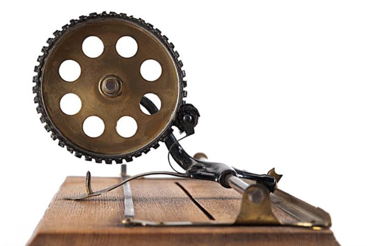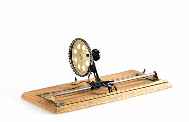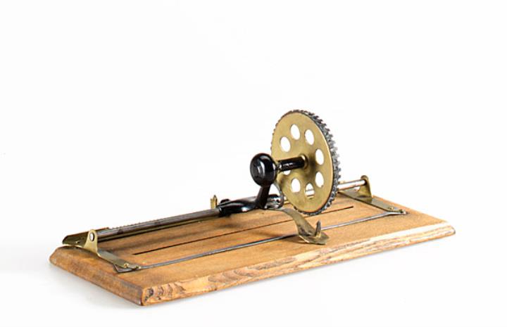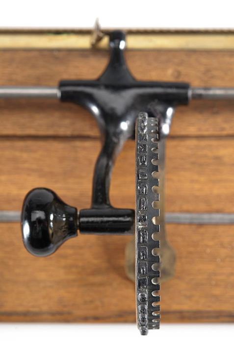 Schreibmaschine Dollar Eigenschaften: Eintaster, Typenscheibe (46 Zeichen) mit seitlichem Drehknopf, Oberanschlag, Farbröllchen Konstrukteur: Robert Hawley Ingersoll Besonderheit: wurde für $ 1.00 verkauft